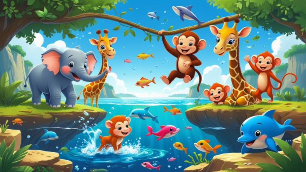 Nature-themed paintings like trees, rivers, mountains, and animals create a calm and happy atmosphere. Science walls can include diagrams of the solar system, human body, and plant life cycle. Moral story murals like “The Lion and the Mouse” or “The Thirsty Crow” teach values in a fun way.