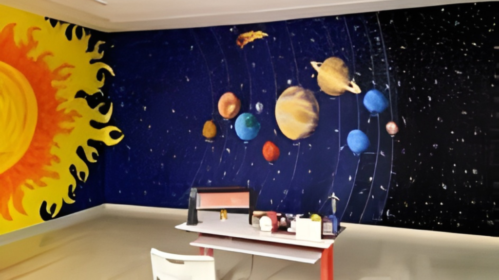 Well-designed wall paintings make learning fun, especially for small children who learn better through visuals rather than only books. For example, a wall showing the water cycle helps students remember it faster. Similarly, maps painted on walls make geography more interesting. Teachers also feel motivated when the classroom looks attractive and educational.